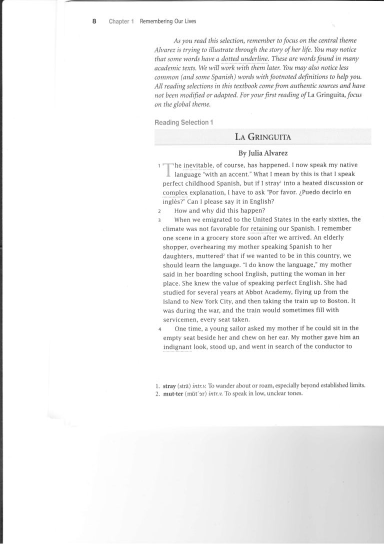 Sandra Cisneros No Speak English Cuento Cultura Y Civilizacion De Hispanoamerica